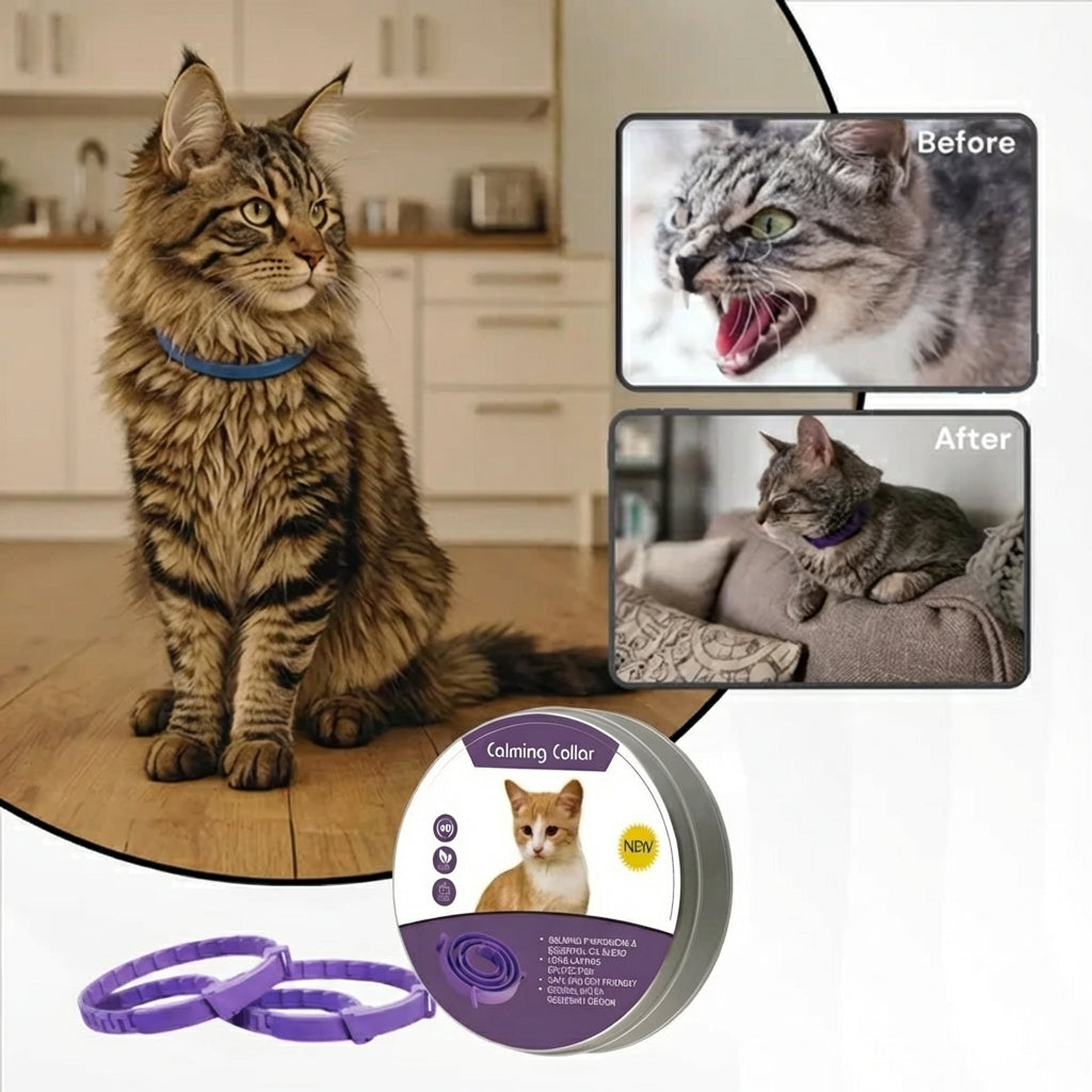 The CalmPaws™ Stress Relief Collar helps your cat stay calm and relaxed by targeting stress-response pheromones. It reduces anxiety, scratching, territorial behavior, and urine marking — creating a peaceful, stress-free environment for both you and your cat.