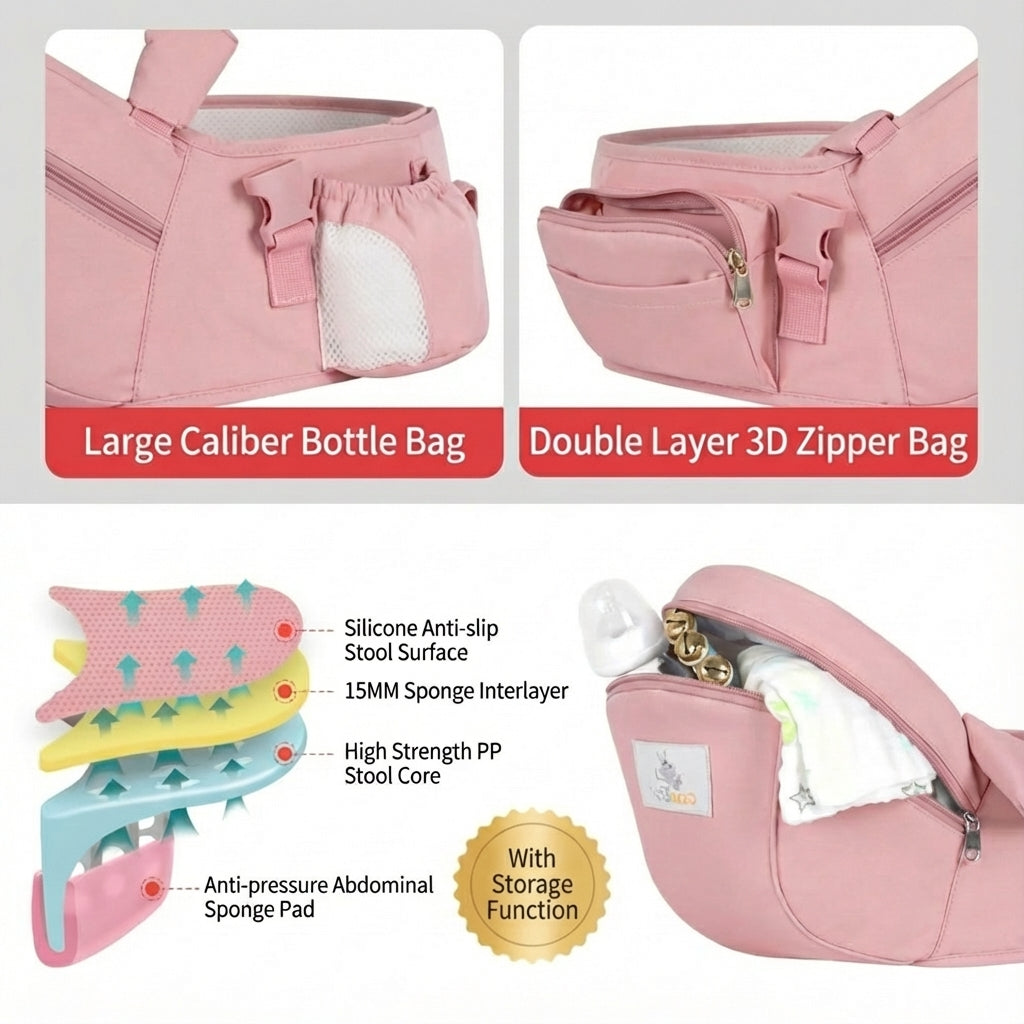 Simply adjust the straps to fit securely, and place the stool on your waist. The ergonomic design ensures comfortable weight distribution for both you and your baby.