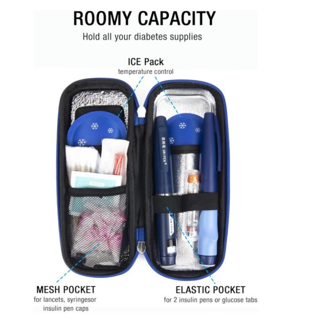 The cooler is ideal for insulin, insulin pens, vials, needles, and other temperature-sensitive medications.