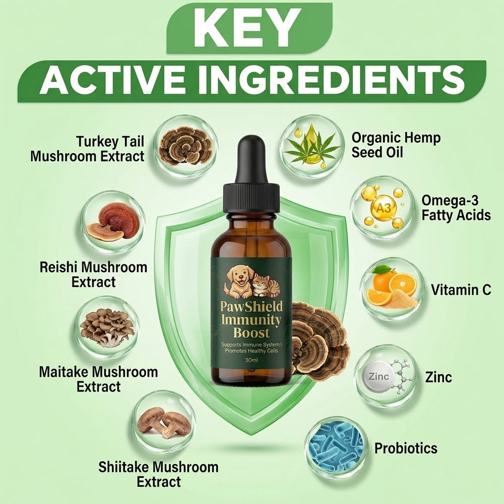 The PawShield Immunity Boost combines powerful, natural ingredients like medicinal mushrooms and turmeric to support your pet’s immune health. It's the perfect way to keep your pet feeling strong, healthy, and energized, no matter their age.