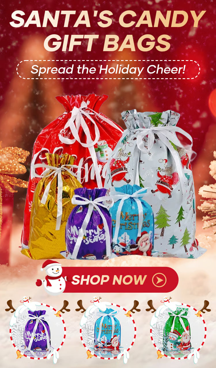 With SANTA’S CANDY GIFT BAGS, wrapping becomes as joyful as unwrapping.