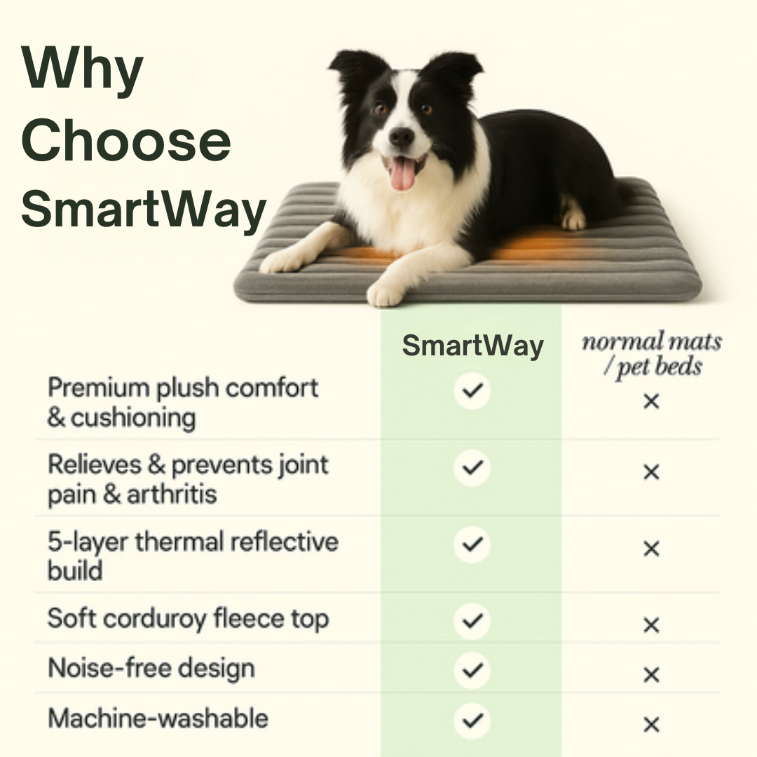 Recent studies show that cold, hard floors can exacerbate joint stiffness, arthritis, and discomfort in pets. Our premium Self-Warming Pet Mat: